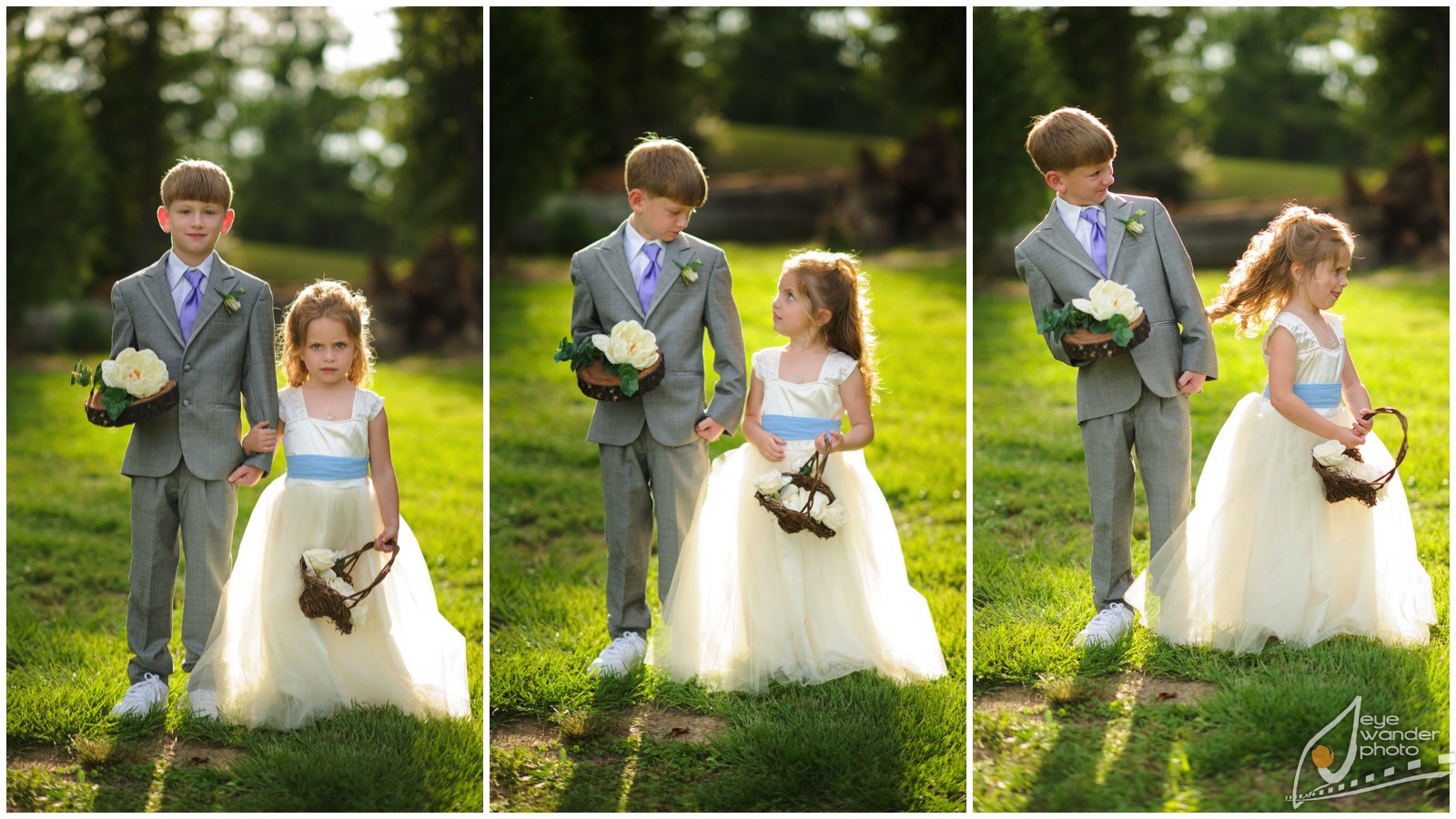 Photographing children at weddings captures some of the most honest looks, some of the best poses, all making very beautiful portraits. I love seeing how you can dress up kids in custom flower girl dresses, or put a young ring bearer in a three piece suit, and they will still run around, roll in the grass, crawl under tables, and find trouble. Children can only sit still for so long, so when I shoot weddings, I keep an eye out for the kids and what they are getting into. I always try to get them to reserve me a seat at the children’s table (AKA the fun table), but they never do. Be sure to click here to see more children at weddings!